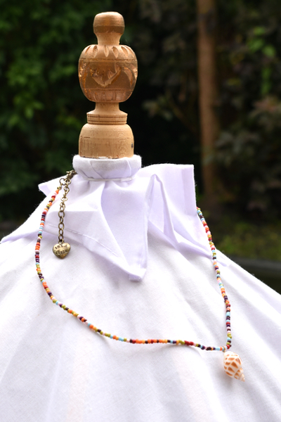 Mit farbigen Perlen verziert
