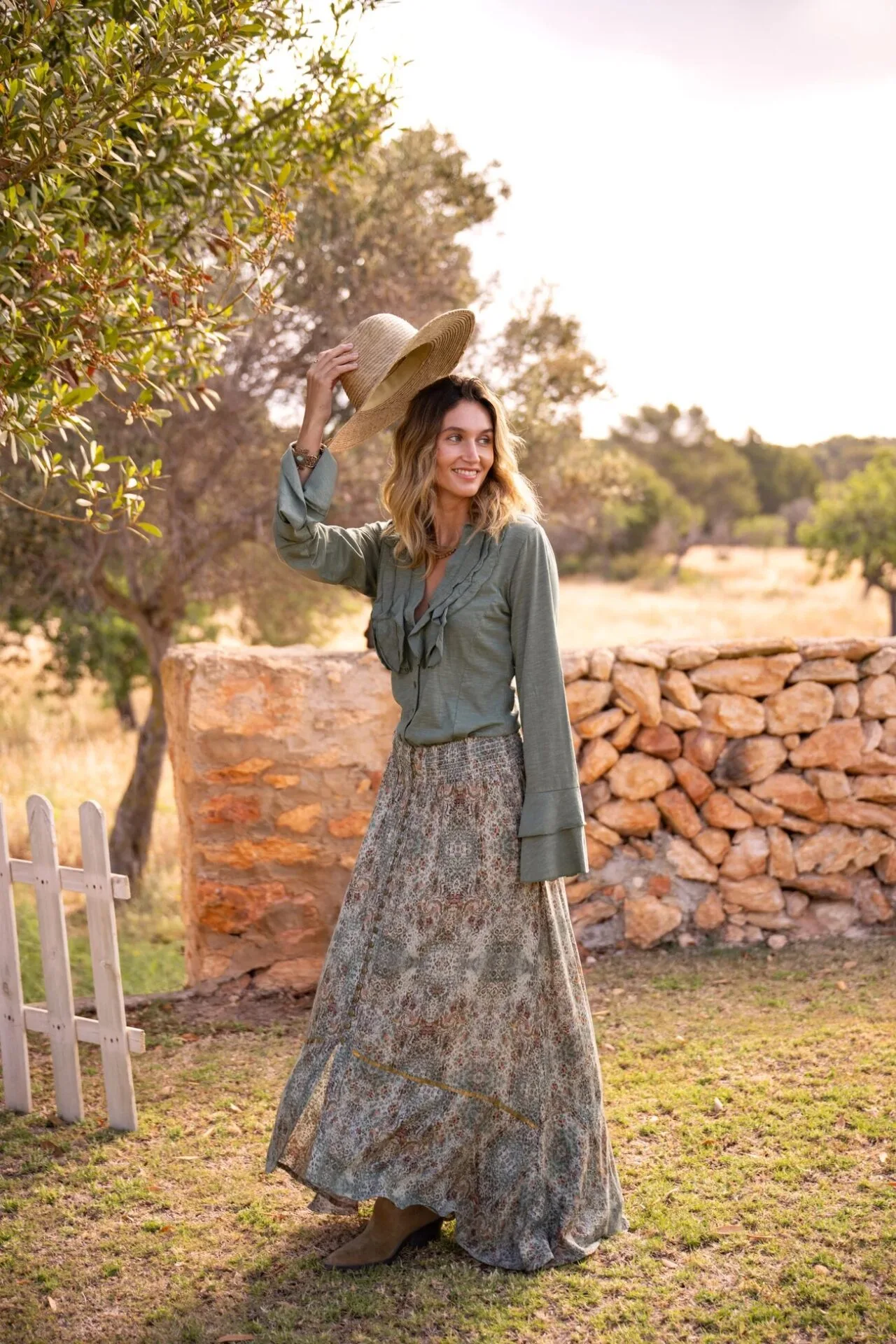 Upgrade je herfst- en wintergarderobe met onze Long Skirt Cala! Met zijn elegante en flatterende pasvorm is deze lange rok essentieel voor het komende seizoen. De soepele stof zorgt voor een comfortabele en vrouwelijke look, terwijl de diepe herfstkleuren perfect passen bij de koudere maanden. Draag deze rok met een mooie trui en laarzen voor een stijlvolle en warme outfit. Voeg de Long Skirt Cala toe aan je collectie en straal deze herfst en winter!