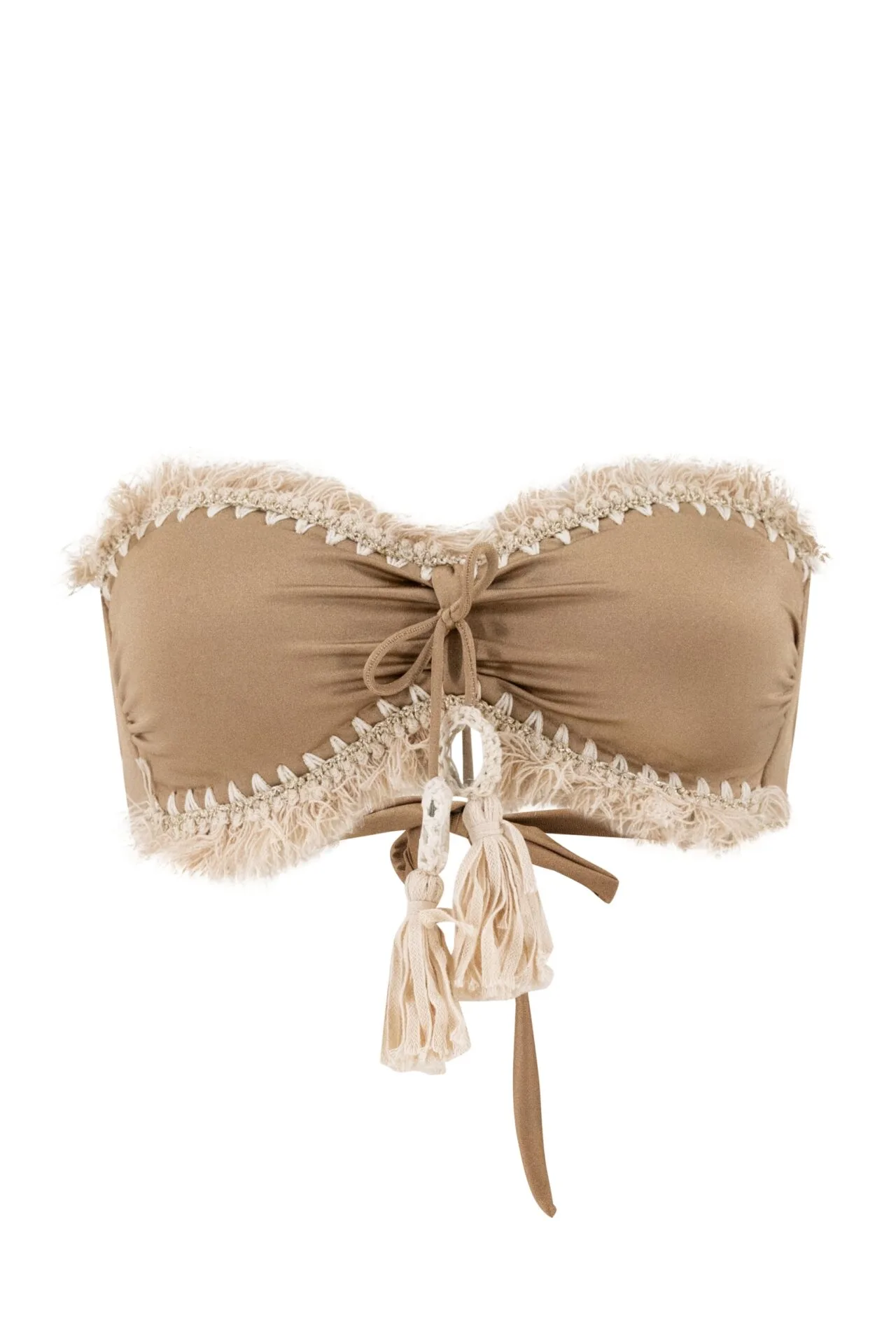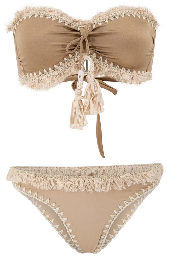 Voorgevormde bikini top met franjes, kan naar wens gestrikt worden, Bikini broekje met franjes