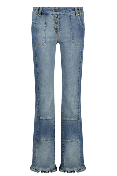 Dit spijker jasje is nou net even anders dan een gewoon jasje, deze heeft een ruche rand langs de onderrand en de uit einden van de mouwen, als sluiting heeft het de bekende leuke bronze knopen met het hartje het roosje en nog andere leuke ronde knopen.