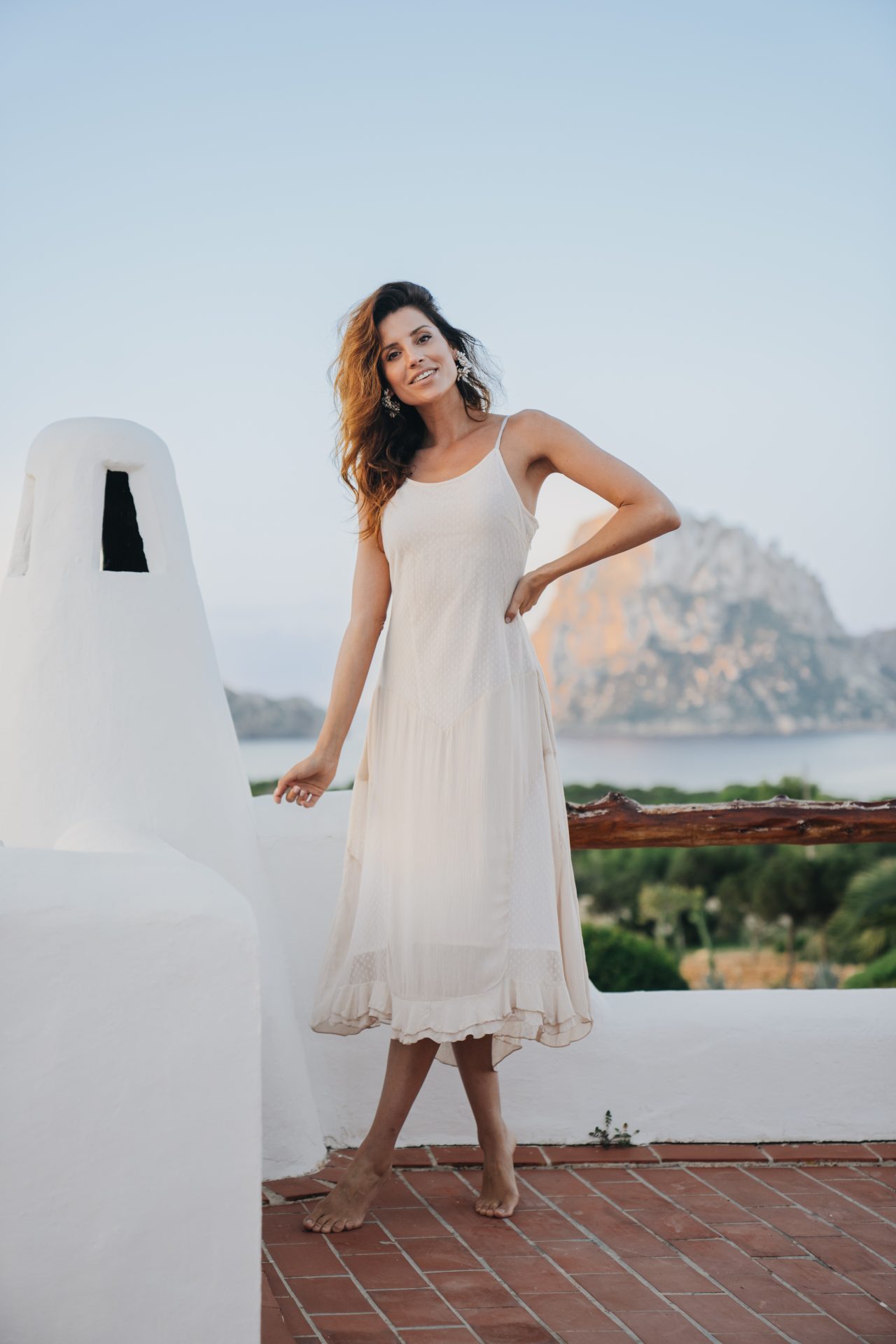 Deze geweldige crème kleurige jurk is van het merk Isla Ibiza Bonita.