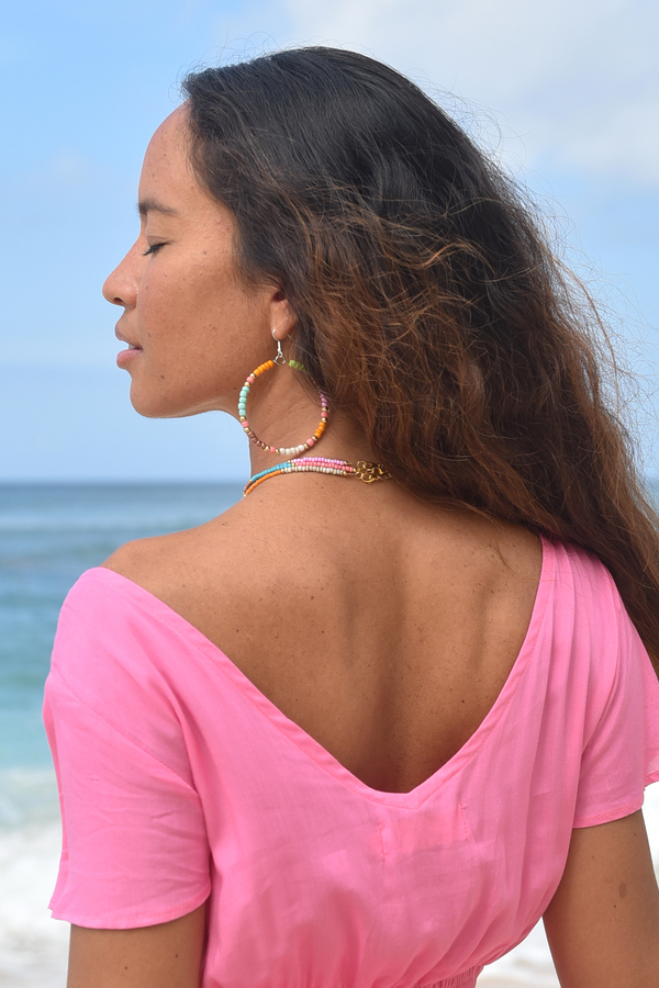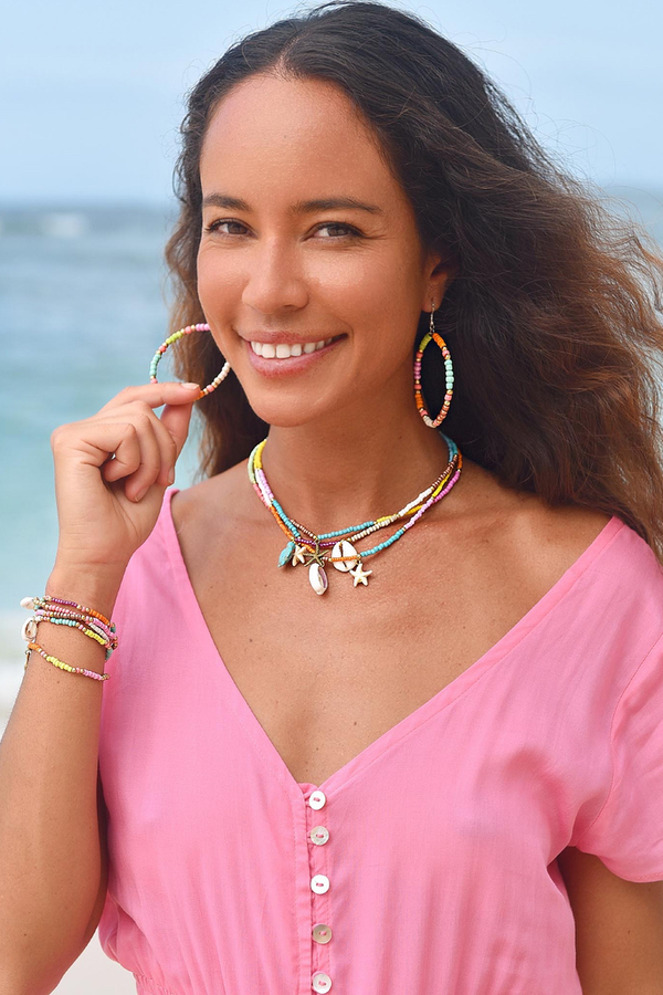 Draag ze los of maak je look compleet met de bijpassende Bon Bini ketting, slippers of armbandenset – alles op elkaar afgestemd voor een stijlvolle zomerlook.