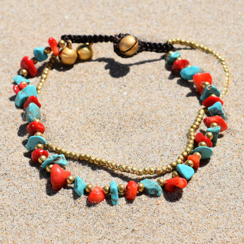 Anklet Beads, Charms & Shell, Coral – Hot Lava