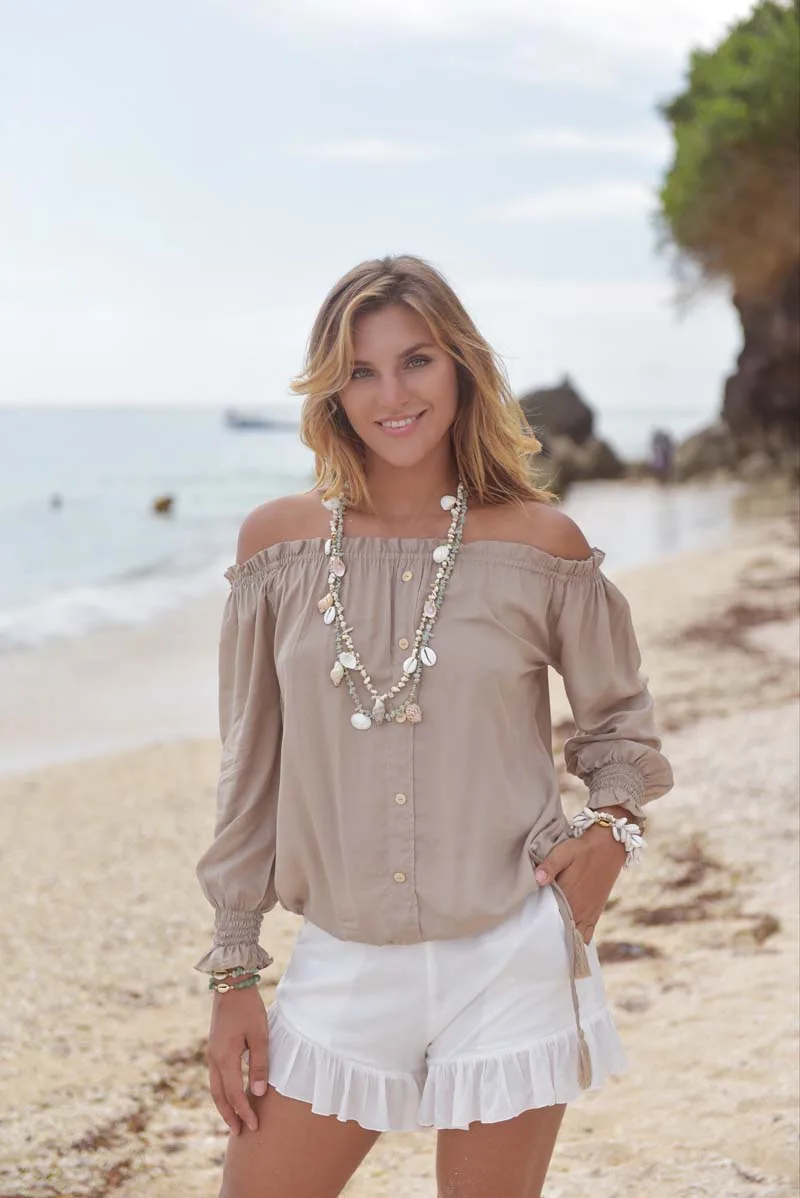 Blouse Bella, taupe – Hot lava