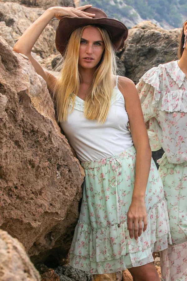 Skirt Midi Flowers Mint 8120817 – Isla Ibiza Bonita