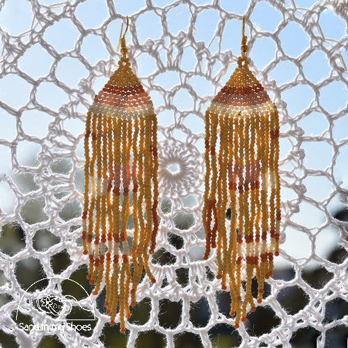 Deze oorbellen zijn gemaakt van de bekende Miyaki beads.