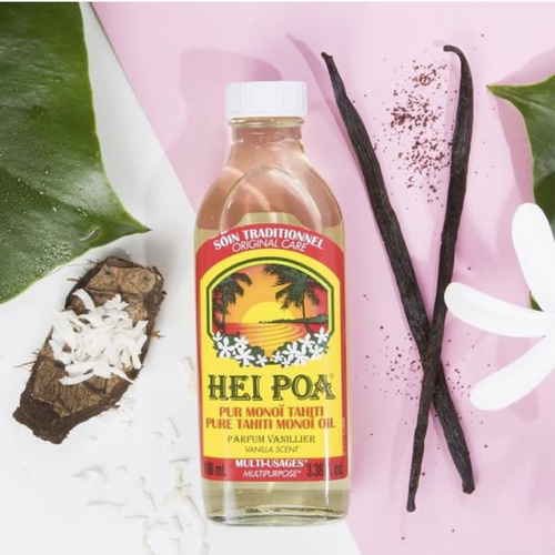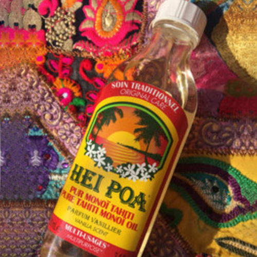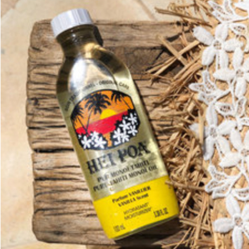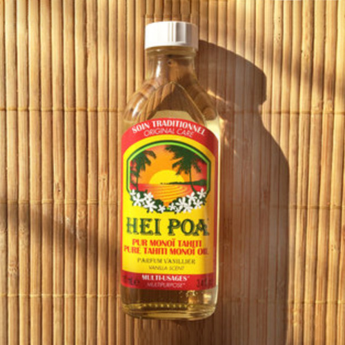 HEI POA OIL VANILLA, el exótico y sensual aroma de vainilla mezclado con aceite de coco y flor de Tiaré. Un aceite con una sensación celestial. Las mujeres, surfistas y buceadores de Tahití utilizan el aceite de monoi para proteger su piel de los efectos del agua salada y del sol. El aceite de Monoï es simplemente sol, mar, playa en una botella...