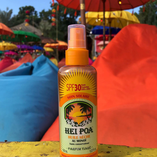 HEI POA TIARE SPF 30 DRY OIL es una maravillosa protección solar de factor 30 que completa la sensación de sol, mar y playa.
