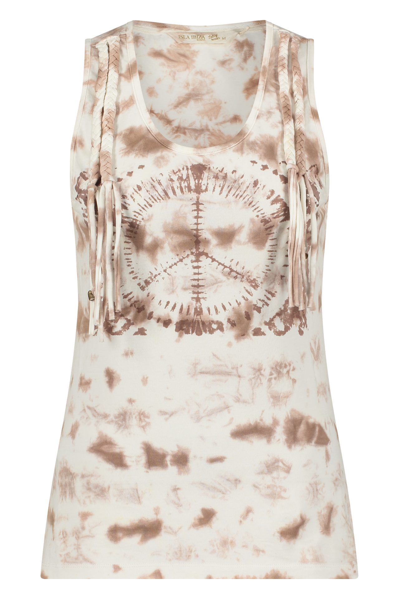 Geverfd volgens de Tie dye methode in de kleuren wit en bruin, zo krijg je een echte bohemian style.