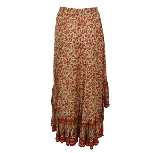 *Let op: Je koopt de kleur van de productfoto (okergeel), de sfeerfoto laat zien hoe de maxirok valt.