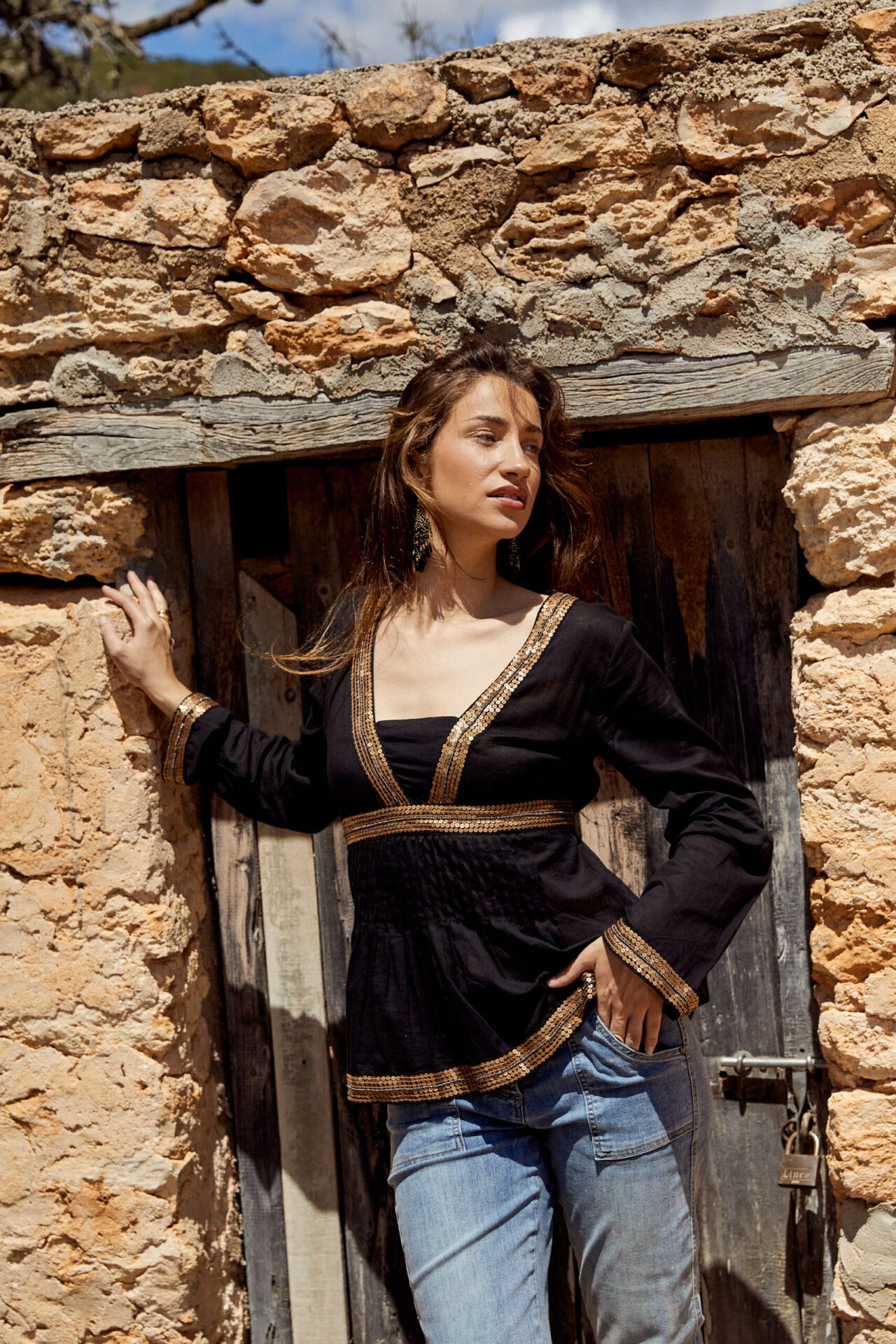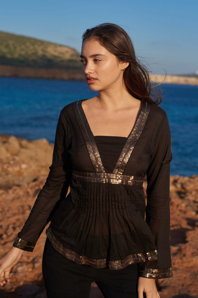 Blouse black met paillette