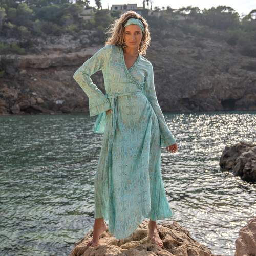 Sé el primero en valorar “Vestido Maxi Cruzado Power of Feathers – Turquesa”