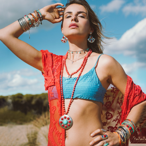 Collier Gypsy Rose, Corail et Turquoise – Shabada