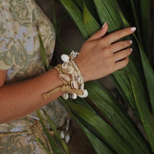 Le bracelet est décoré de différents types de coquillages