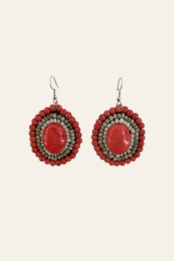 De stof is geverfd volgens de tie-dye methode met de kleuren ivory, rood, taupe, beige, oranje met als eind resultaat een mooie print unieke print, dus niet één exemplaar is hetzelfde.