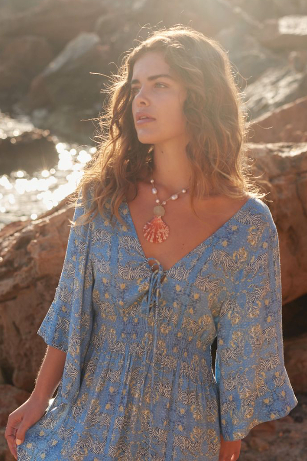 De Long Dress Boho Tiger – Blue is een absolute favoriet voor zomerse dagen. Met haar luchtige pasvorm, bohemian details en opvallende print is deze jurk ideaal voor een dag aan zee, een zomerfeest of gewoon omdat je zin hebt in iets bijzonders.