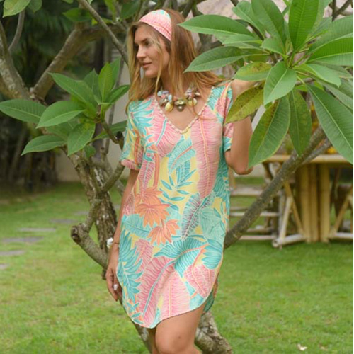 Deze jurk zorgt een ultiem zomers en exotisch gevoel.
