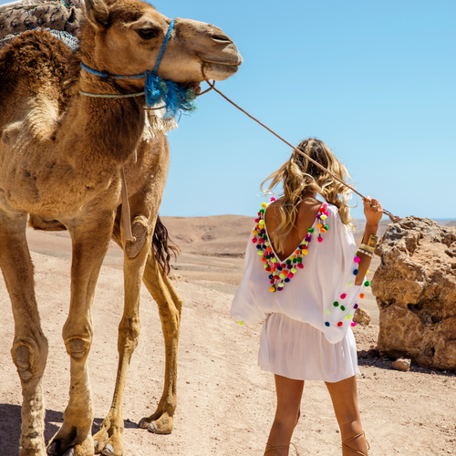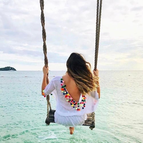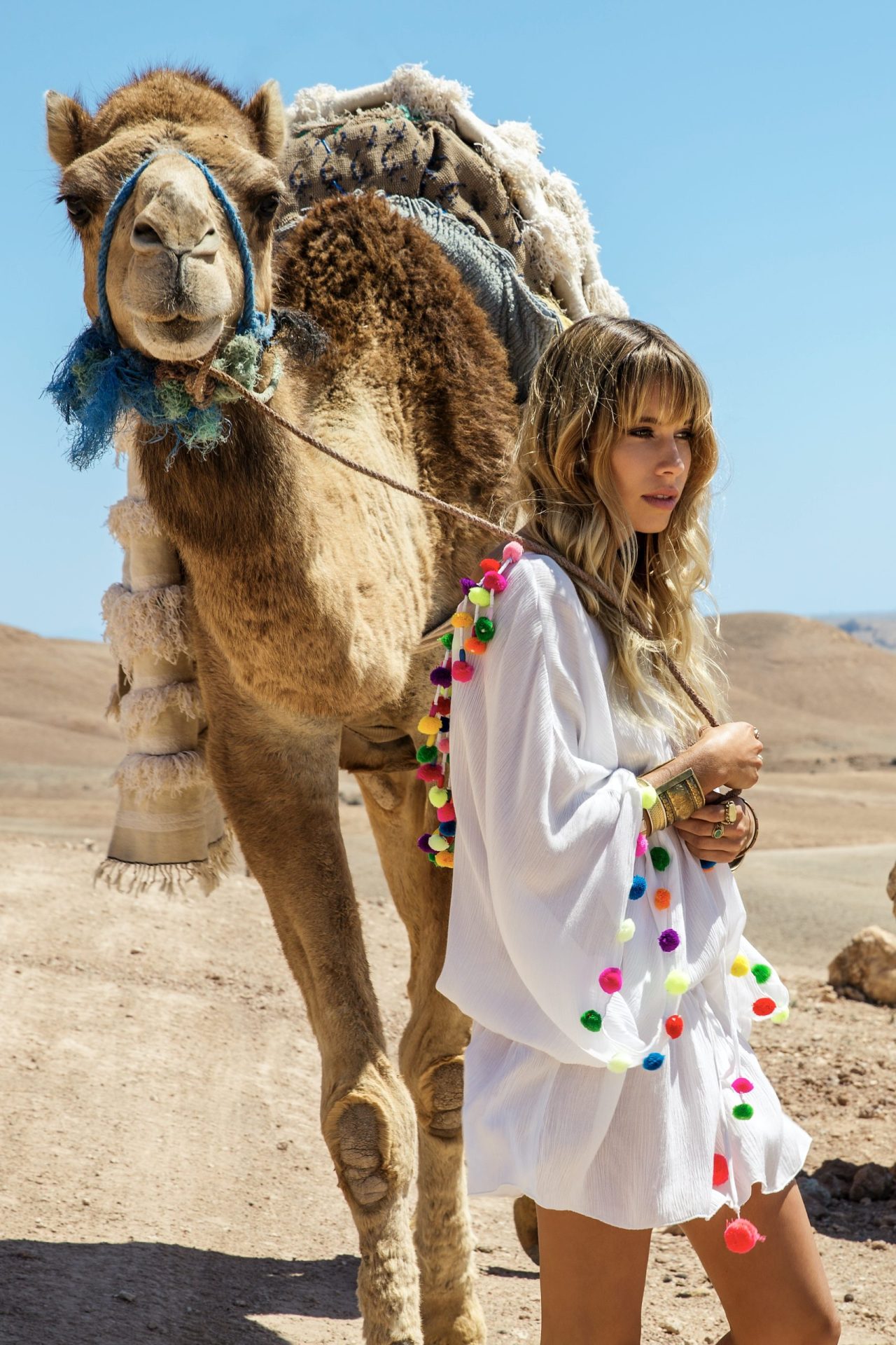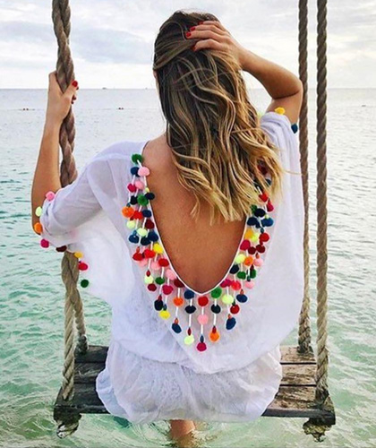 Ce qui rend cette tunique si unique, ce sont les pompons aux couleurs vives qui courent le long des manches papillon, du cou et qui attirent le regard le long de la ligne du dos !