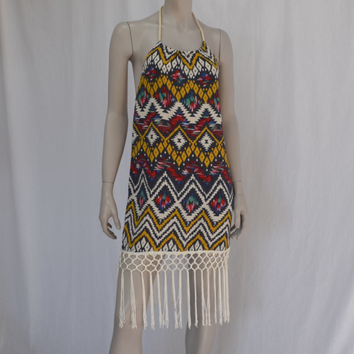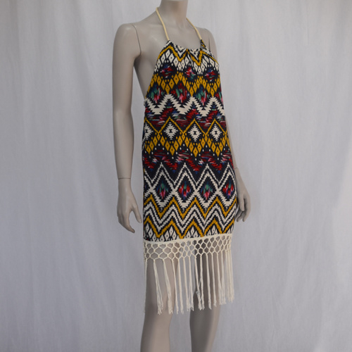 En bas se trouve un bord avec des boutons en macramé avec des franges.