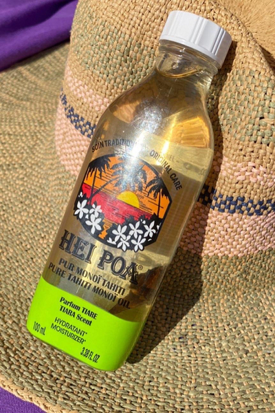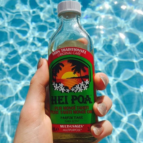 HEI POA OIL TIARE, het beauty geheim van de mooie Vahini of Tahitiaanse vrouwen. Al meer dan 200 jaar wordt dit al gebruikt voor de dagelijkse verzorging van hun huid en hun prachtige haren. Monoï oil is een weldaad voor zowel je huid en haar dankzij de verzorgenden en kalmerende eigenschappen. Monoi olie wordt gemaakt uit kokosolie die verrijkt is met de essentie van de Tiarebloem. De bloem is ook terug te vinden in het flesje. Hei Poa Tiare ruikt alsof je op n tropisch eiland bent aangekomen. Al meer dan 40 jaar is dit de meest populaire olie van Hei Poa.