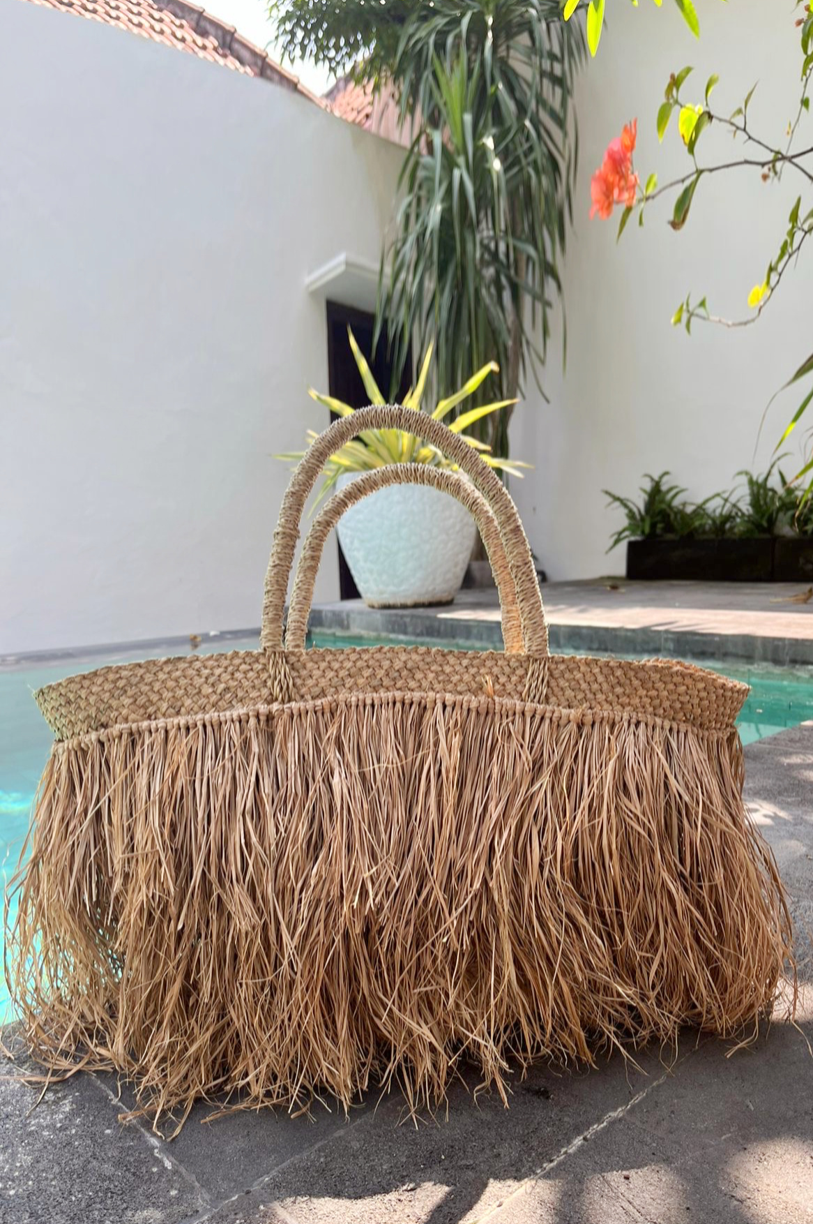 Zomers, stijlvol en superhandig – dat is de Ubud-mand. Deze handgemaakte tas met franjes van natuurlijk raffia is een echte blikvanger. De gevlochten hengsels geven net dat beetje extra charme.