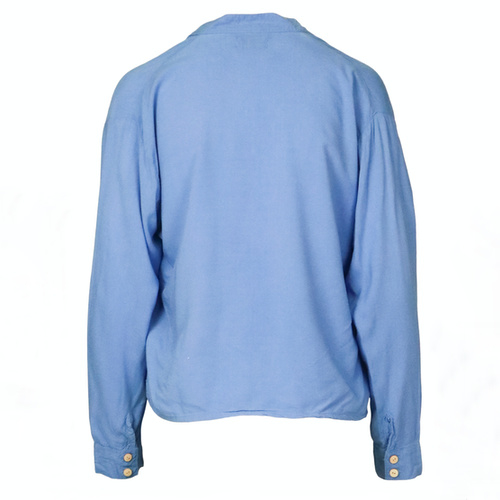 Verder heeft de blouse een mooie V- hals met drie houten knoopjes als sluiting.