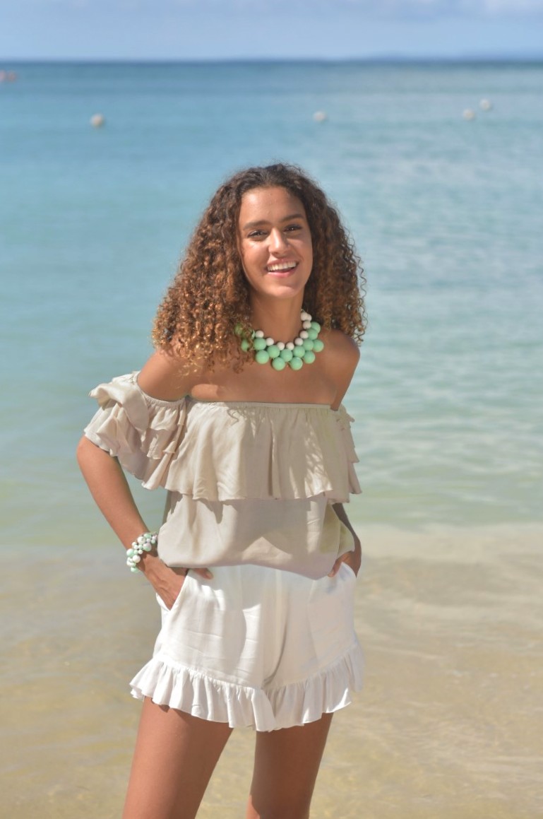 Deze geweldige top van Hot lava is de Valerie en is verkrijgbaar bij ons in 3 kleuren Ivory, mint en taupe.