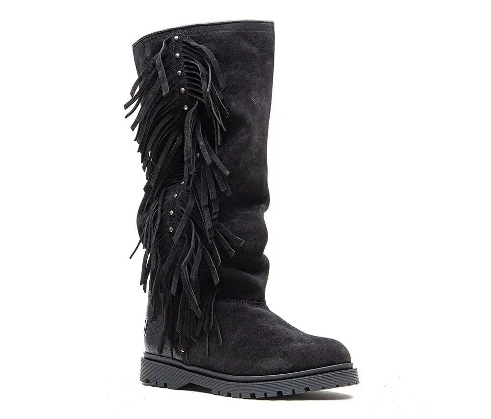 Fringe Tall Black | Suède Dameslaarzen met Merinowollen Voering