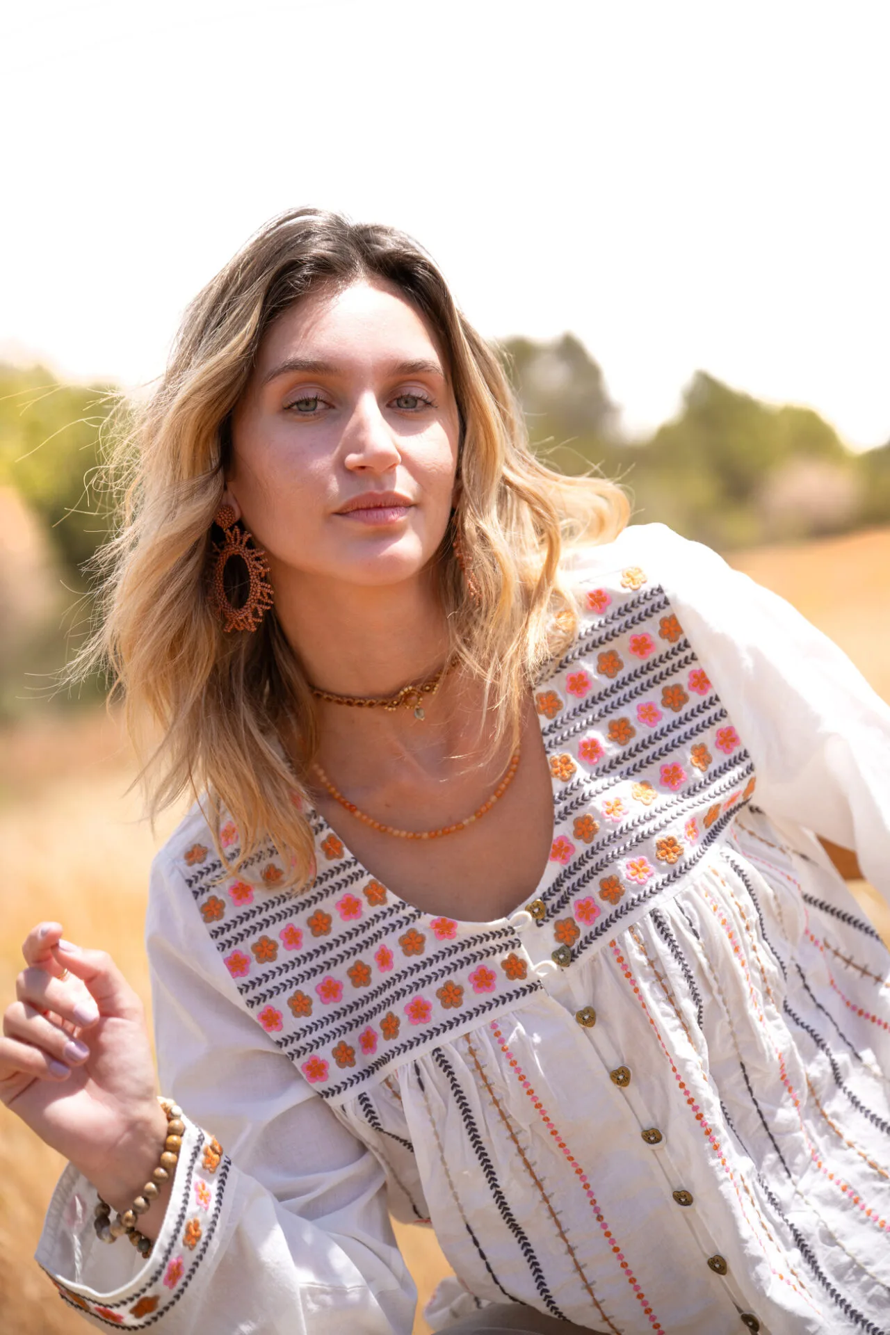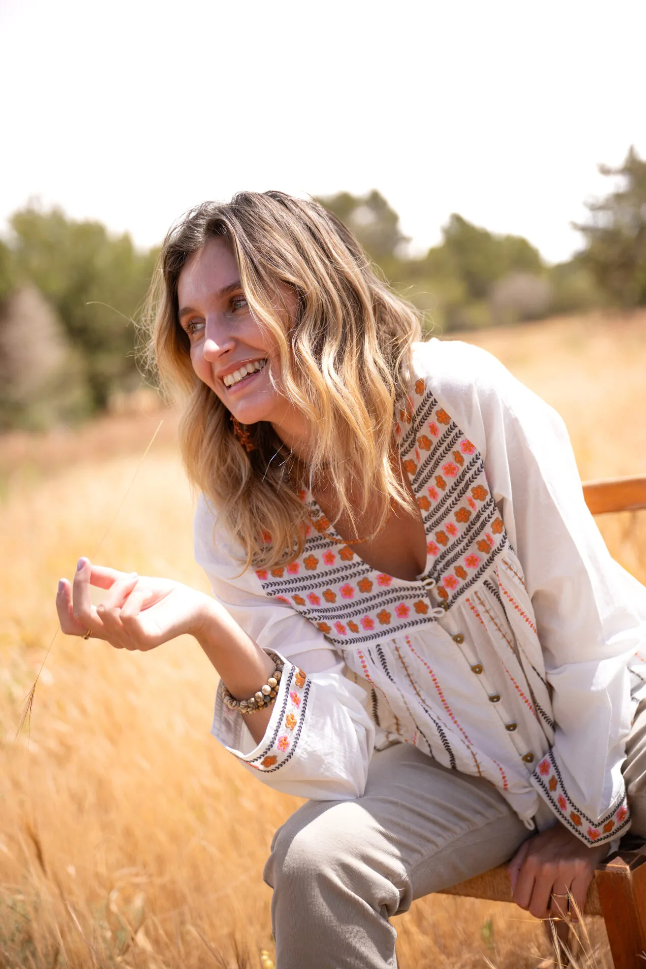De Blouse Olvera is perfect voor het herfst/winterseizoen van 2025. Deze stijlvolle blouse is gemaakt van hoogwaardig materiaal en heeft een tijdloos design dat gemakkelijk te combineren is met verschillende outfits. Of je nu naar kantoor gaat of een avondje uit, deze blouse is geschikt voor elke gelegenheid. Met zijn comfortabele pasvorm en elegante uitstraling zal de Blouse Olvera zeker een favoriet worden in je kledingkast!