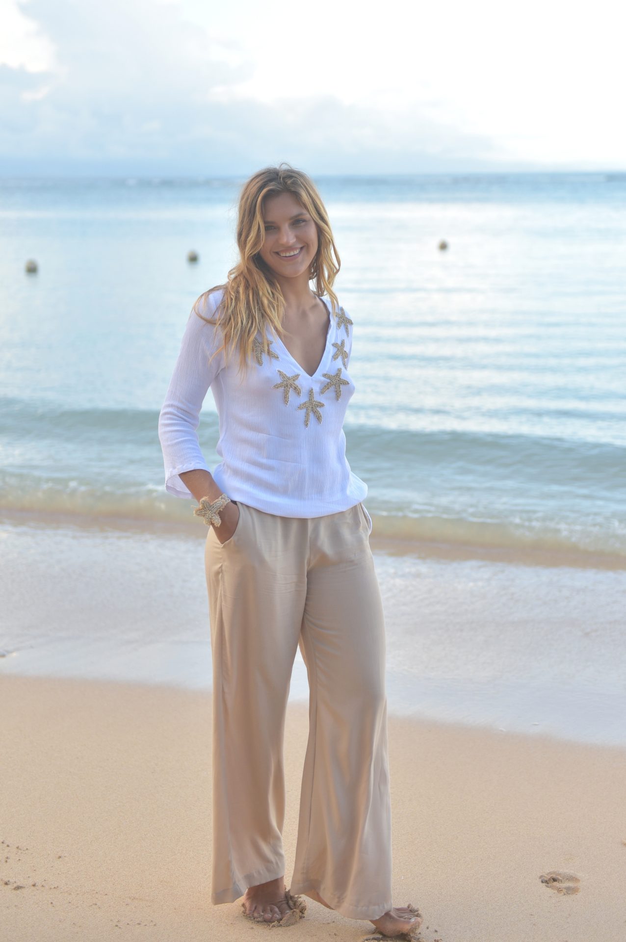 Blouse Starfish is een editie van een van Hot Lava’s iconische ontwerpen, een betoverend item dat je niet mag missen in je zomergarderobe. De V-hals is versierd met handgemaakte kralen in de vorm van zeester, met liefde gemaakt in Bali. De stof is een luxueuze crinkle rayon voile, die licht en luchtig aanvoelt, perfect voor warm weer. Blouse Starfish is een echt statement piece en belichaamt de essentie van zomerse luxe. Verkrijgbaar in vele andere betoverende kleuren.