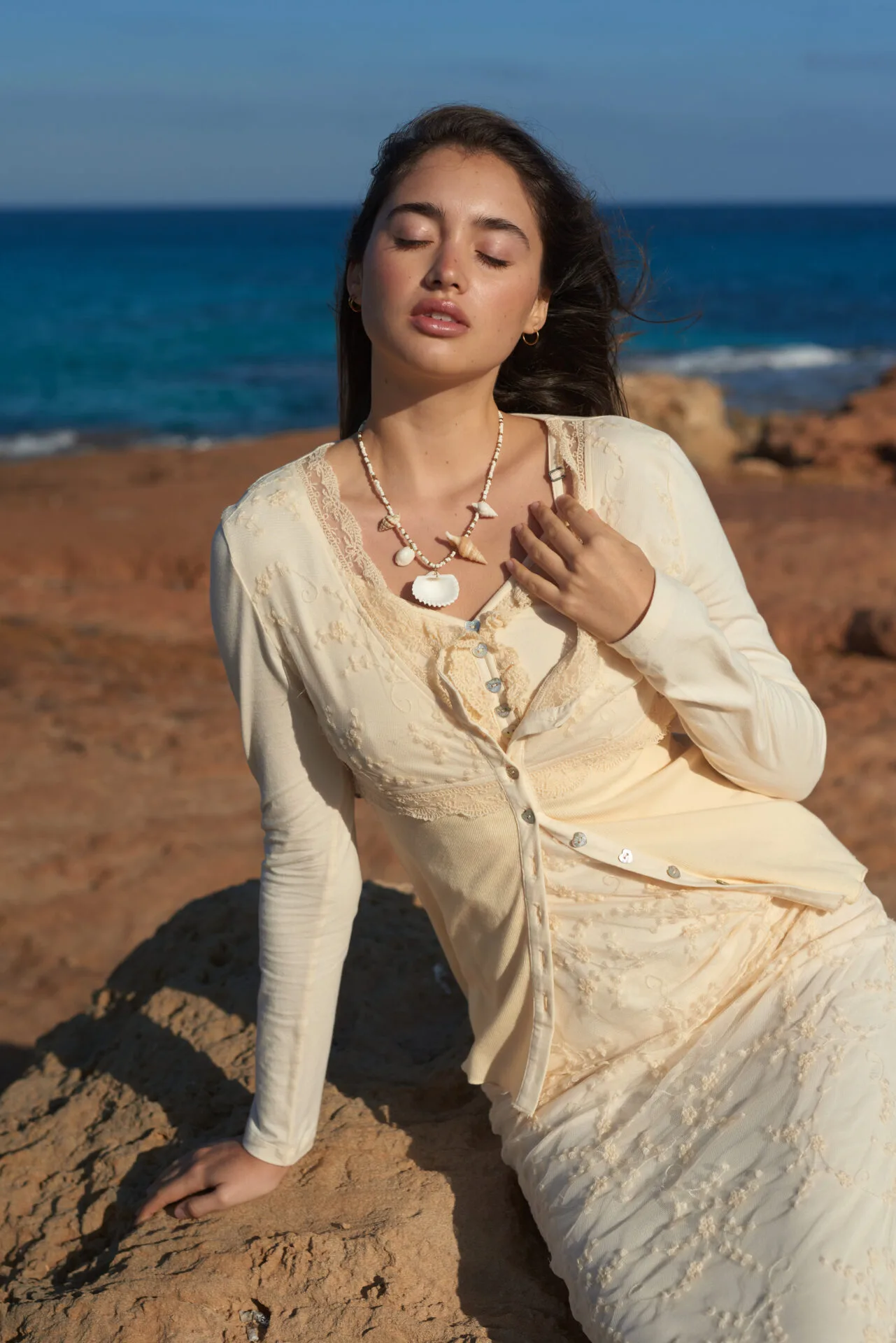 De zachte creamkleur laat zich moeiteloos combineren met de rest van de zomercollectie, waardoor je eenvoudig een harmonieuze en stijlvolle look creëert. Draag het vest losjes over een singlet of combineer het met de bijpassende Free Spirit top voor een complete set die perfect past binnen de Brands of Ibiza-stijl.
