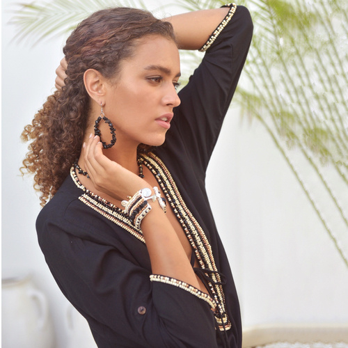 - Tuniek Indy is afgewerkt met de kenmerkende Hot Lava bedel Indy kralen gemaakt van Indy stenen, kleine gemengde kraaltjes en natuurlijke porceleinslak schelpjes. Deze opvallende tuniek is het perfecte item om de show te stelen op een zwembadfeestje of een zwoel avondje uit.A24599bl_bl Tuniek Indy Zwart ZwartBeschikbare maten: XS – XXXL