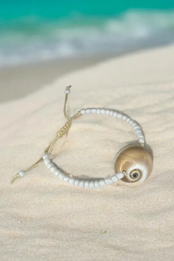 De Bracelet Marisma Cream is een verfijnd armbandje met een zachte, zomerse uitstraling. De crèmekleur roept direct het gevoel op van zonovergoten stranden en ontspannen eilanddagen. Dit sieraad is ontworpen als subtiele finishing touch die elke outfit moeiteloos versterkt.