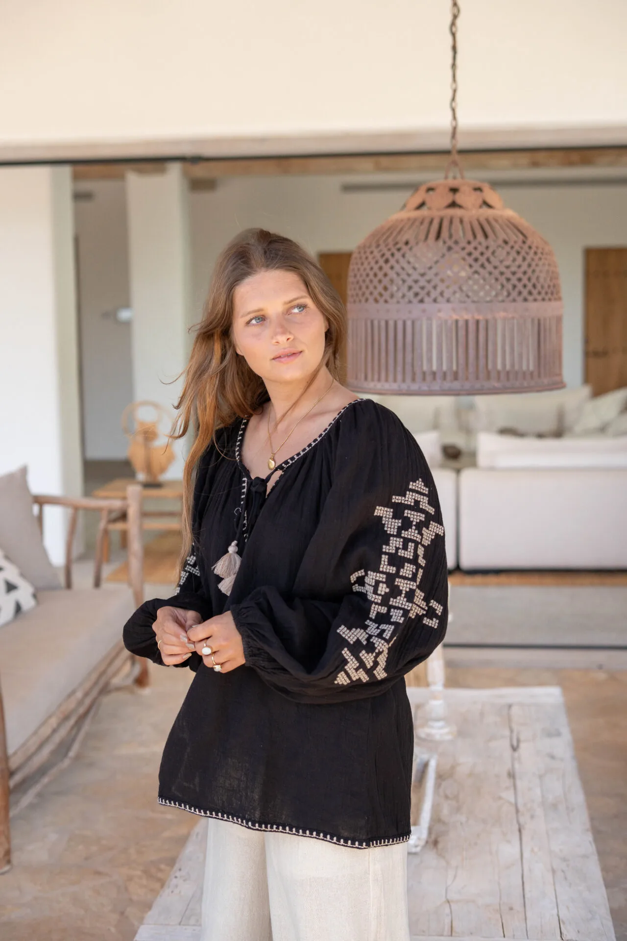 Fijne oversized blouse met borduurwerk